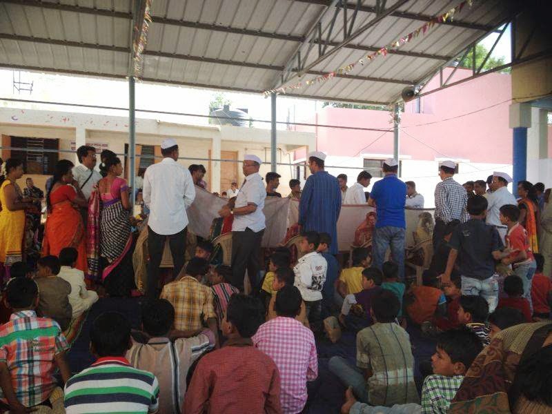 Grüße.Heute sende ich die Informationen über die Veröffentlichung Feier unseres Jahreskalender für das Jahr 2015. Heute wurde de rBuchungsplan offiziell durch Herrn Pandurang Nadkarni, Präsident Anterbharti Organisation eingeweiht. Dies ist das siebte Jahr der Veröffentlichung des Jahreskalender von Snehalaya. C. A. Ashok Pitale, Dr. Sherryl ein Sozialarbeiter aus den USA, Frau Pratibha Dhoot, die Vertreter der Mahalaxmi multy Staatsbank, Spirituell Guru Kaustubh Kale etc, sprach über die Spezialität von Snehalaya`s Kalender. Ajit Kulkarni erläuterte die Wirtschaft und die sozialen Auswirkungen des Kalenderprojekts. Das Orchester der blinde Sänger, die durch Anamprem Lieder für Nachrichten, 2015 willkommen heissen.